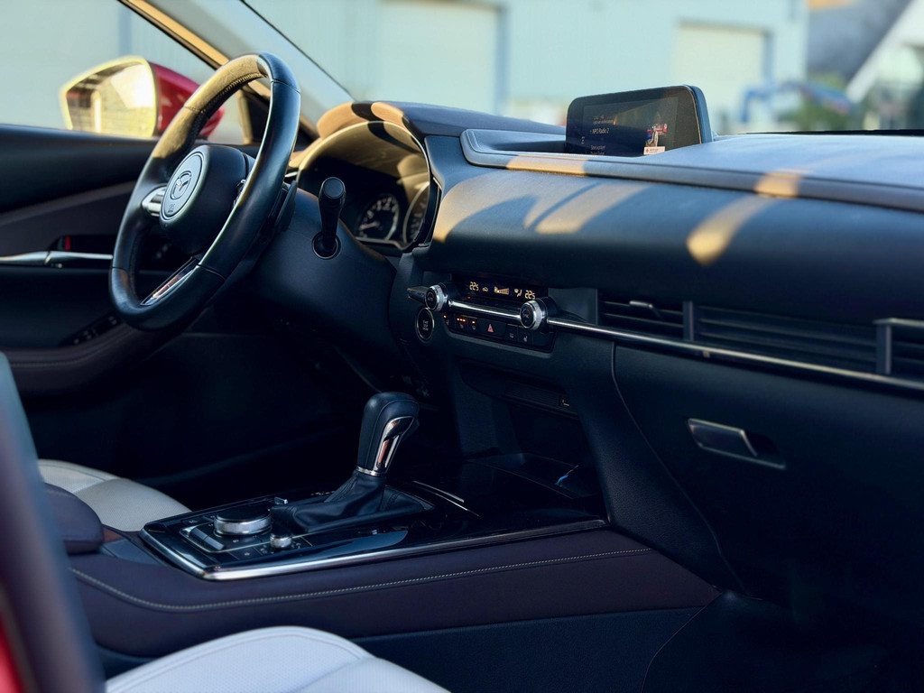 Met zijn ruimte en zijn prestaties is dit de auto die bij u past. Deze Mazda CX-30 heeft 51216 kilometer gelopen. Hij heeft een benzinemotor en een automatische transmissie. Leren bekleding versterkt de topklasse uitstraling van het interieur. Doe maar luxe! Neem plaats in de verwarmbare voorstoelen en voel de weldaad in koude dagen. Een handige voorziening op deze auto is de elektrische achterklep die u op afstand kunt openen. Aan een fijn opwarmertje in de kille dagen is gedacht, in de vorm van een verwarmd stuurwiel. Bij de zeer complete uitrusting van deze auto behoren ook 18 inch lichtmetalen velgen, LED koplampen, dakspoiler, extra getint glas, in delen neerklapbare achterbank en LED-achterlichten.