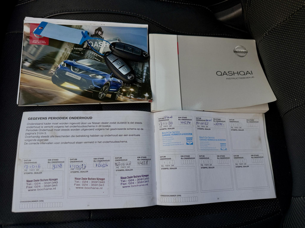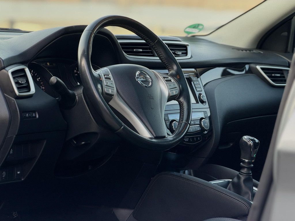 Het gebruik van de 360 graden camera op deze auto helpt u bij het navigeren door lastige rijbanen en het drukke stadsverkeer. U verwacht natuurlijk automatische airconditioning in deze auto, en die is er dan ook. De parkeersensoren waarschuwen wanneer u te krap inparkeert of dat ene paaltje niet hebt gezien. Kilometers rijden met een exacte snelheid? Dan is de cruise control je vriend! Gemak staat voorop bij deze Nissan Qashqai. Bijvoorbeeld merkbaar aan de keyless entry. Wat u ook in deze auto kunt vinden zijn navigatiesysteem, DAB ontvangst, automatisch dimmende binnenspiegel en lederen stuur en versnellingspook.