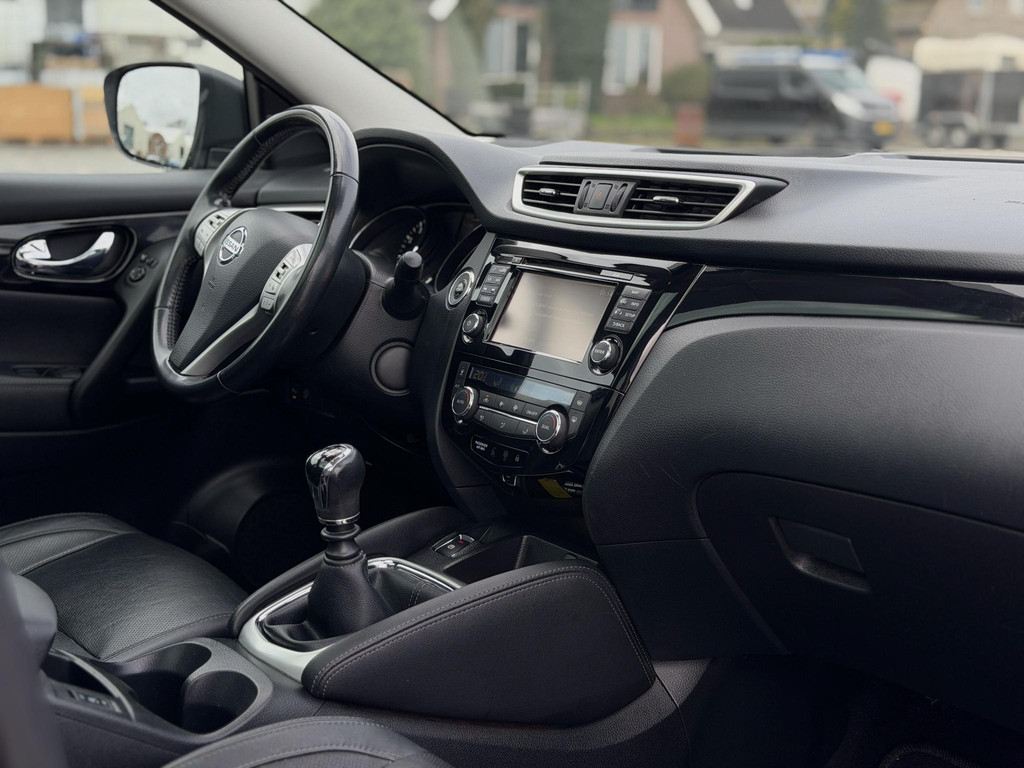 Met de hulp van vier camera's, biedt de 360 graden camera op deze auto een panoramisch zicht, wat bijzonder nuttig is bij het parkeren en manoeuvreren. Met de automatische airconditioning selecteert u de gewenste temperatuur. Het systeem doet de rest. Parkeersensoren zijn een handig hulpmiddel om parkeerschades te voorkomen. Nooit te snel, altijd constant: dat is het voordeel van de aanwezige cruise control. Gemak staat voorop bij deze Nissan Qashqai. Bijvoorbeeld merkbaar aan de keyless entry. En dan is deze auto ook nog eens voorzien van navigatiesysteem, DAB ontvangst, automatisch dimmende binnenspiegel en lederen stuur en versnellingspook.