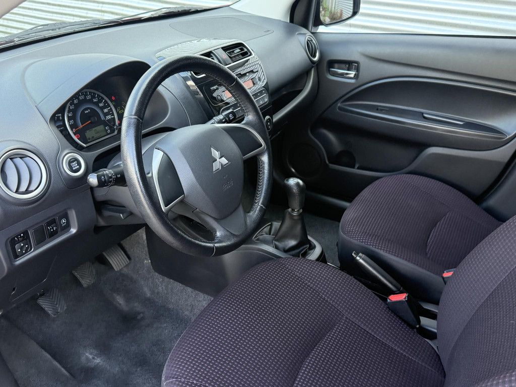 Met een auto als deze Mitsubishi Space Star komt u absoluut goed voor de dag. Hij heeft een benzinemotor en een handgeschakelde vijfversnellingsbak. Bij de uitrusting van deze auto horen onder meer 14 inch lichtmetalen velgen, extra getint glas en in delen neerklapbare achterbank.