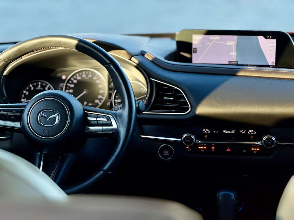 Met zijn ruimte en zijn prestaties is dit de auto die bij u past. Deze Mazda CX-30 heeft 51216 kilometer gelopen. Hij heeft een benzinemotor en een automatische transmissie. Leren bekleding versterkt de topklasse uitstraling van het interieur. Doe maar luxe! Neem plaats in de verwarmbare voorstoelen en voel de weldaad in koude dagen. Een handige voorziening op deze auto is de elektrische achterklep die u op afstand kunt openen. Aan een fijn opwarmertje in de kille dagen is gedacht, in de vorm van een verwarmd stuurwiel. Bij de zeer complete uitrusting van deze auto behoren ook 18 inch lichtmetalen velgen, LED koplampen, dakspoiler, extra getint glas, in delen neerklapbare achterbank en LED-achterlichten.