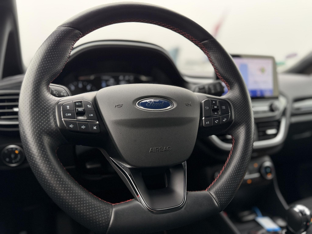 Zoals u mag verwachten van deze Ford Fiesta is hij uitgerust met een reeks aan actieve veiligheidssystemen. In het instrumentarium ziet u tijdens de rit ook de belangrijkste verkeersborden aangegeven, die de auto automatisch voor u leest. Het Lane-keeping systeem zorgt dat u mooi binnen de lijntjes blijft. Ongemerkt buiten de rijstrook komen is er niet meer bij. Vermoeidsheidsherkenning neemt tekenen van vermoeidheid waar bij de bestuurder. Het systeem voorkomt dat er daardoor ongelukken gebeuren. Bovenop deze veiligheidsfeatures heeft deze Ford bovendien hill hold functie, brake assist en bandenspanningcontrolesysteem.