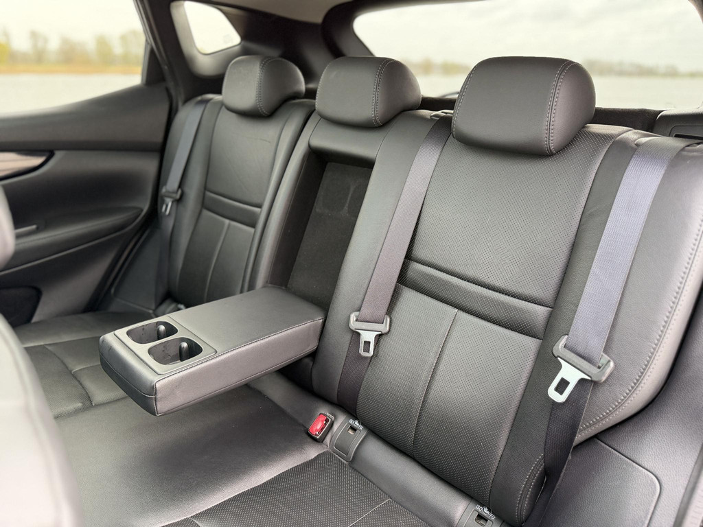 Deze Nissan Qashqai maakt een voortreffelijke indruk. Hiermee mag je gezien worden in de stad én op de weg! Een zuinige benzinemotor en uitstekende prestaties, dat is wat deze Nissan aanbiedt. De hoogwaardige, lederen bekleding benadrukt de kwaliteit van deze auto. Tijdens gure dagen is het prettig zitten in de verwarmbare voorstoelen. Licht en luchtpartijen: u krijgt ze bijgeleverd dankzij het glazen panoramadak. Tot de uitrusting behoren ook 17 inch lichtmetalen velgen, LED koplampen, extra getint glas, in delen neerklapbare achterbank en verstelbare lendensteunen.