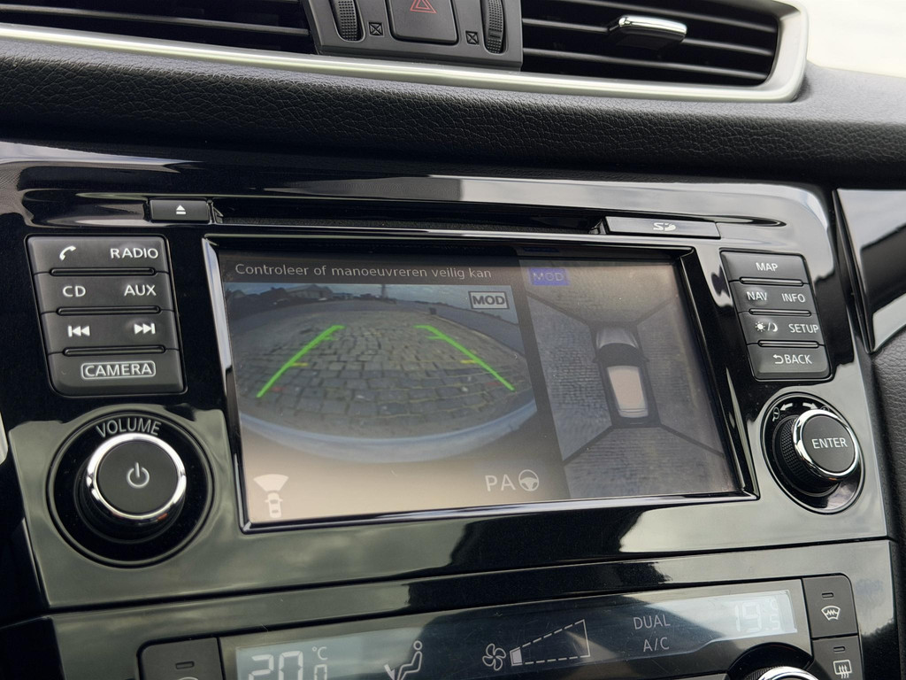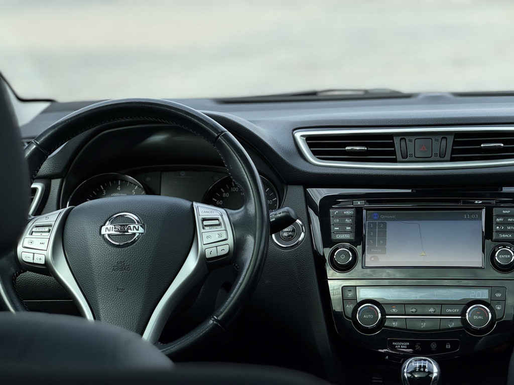 Met de hulp van vier camera's, biedt de 360 graden camera op deze auto een panoramisch zicht, wat bijzonder nuttig is bij het parkeren en manoeuvreren. Met de automatische airconditioning selecteert u de gewenste temperatuur. Het systeem doet de rest. Parkeersensoren zijn een handig hulpmiddel om parkeerschades te voorkomen. Nooit te snel, altijd constant: dat is het voordeel van de aanwezige cruise control. Gemak staat voorop bij deze Nissan Qashqai. Bijvoorbeeld merkbaar aan de keyless entry. En dan is deze auto ook nog eens voorzien van navigatiesysteem, DAB ontvangst, automatisch dimmende binnenspiegel en lederen stuur en versnellingspook.