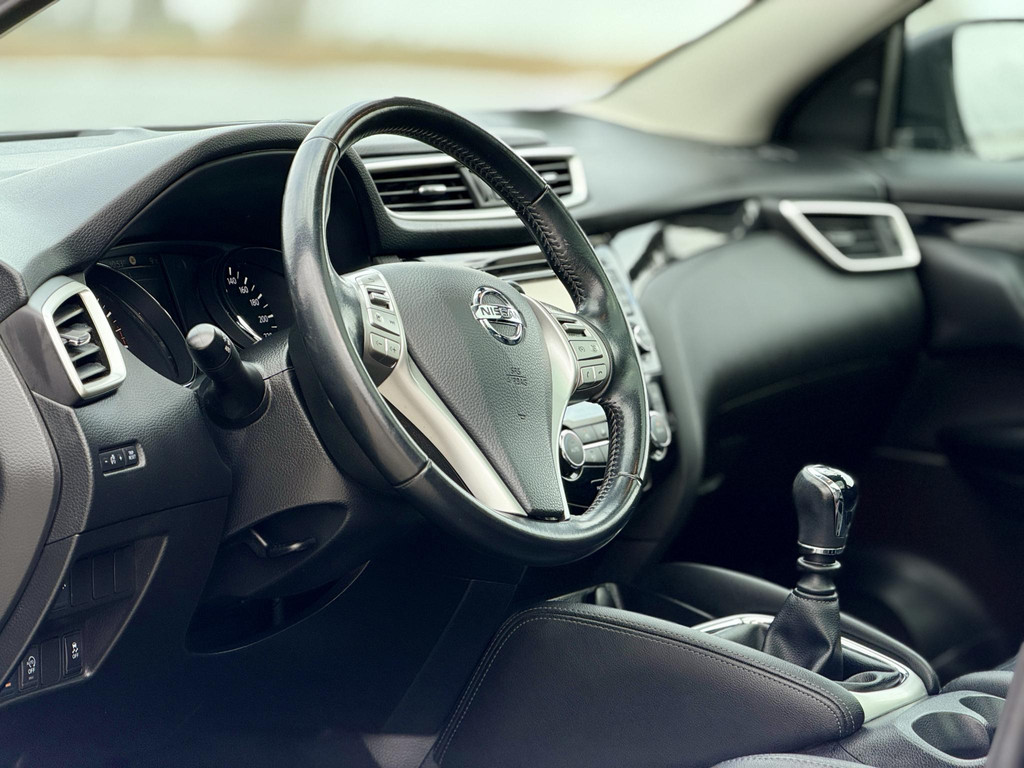 Met de hulp van vier camera's, biedt de 360 graden camera op deze auto een panoramisch zicht, wat bijzonder nuttig is bij het parkeren en manoeuvreren. Met de automatische airconditioning selecteert u de gewenste temperatuur. Het systeem doet de rest. Parkeersensoren zijn een handig hulpmiddel om parkeerschades te voorkomen. Nooit te snel, altijd constant: dat is het voordeel van de aanwezige cruise control. Gemak staat voorop bij deze Nissan Qashqai. Bijvoorbeeld merkbaar aan de keyless entry. En dan is deze auto ook nog eens voorzien van navigatiesysteem, DAB ontvangst, automatisch dimmende binnenspiegel en lederen stuur en versnellingspook.